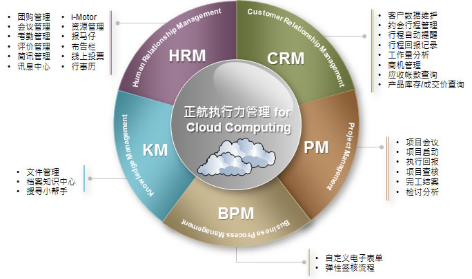 正航軟件以 23年的 ERP 企業(yè)輔導經(jīng)驗,了解企業(yè)的需求不僅僅只是請采購、進(jìn)銷(xiāo)貨、應收/付賬款及會(huì )計財務(wù)作業(yè)等,另有占營(yíng)運成本比重更大的「作業(yè)管理流程」也是相當重要的一環(huán),因此正航軟件推出「執行力管理系統」產(chǎn)品,以「云端運算」方式提供企業(yè)營(yíng)運流程所需求的內部管理,并具備以下特色: